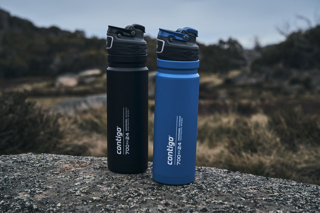 CONTIGO® Free Flow - ryze outdoorová vakuová termoska v čistém a ničím nerušeném industriálním designu opatřená zámkem automatického uzávěru AUTOSEAL®, hygienickým krytem pítka a výklopným držadlem snadno upevnitelným na karabinu. Nápoj uchová teplý po dobu až 10 h, studený po dobu až neuvěřitelných 29 h. Dostupná ve dvou unisex odstínech - modrá a lékořice (černá), hrubší povrchová úprava.