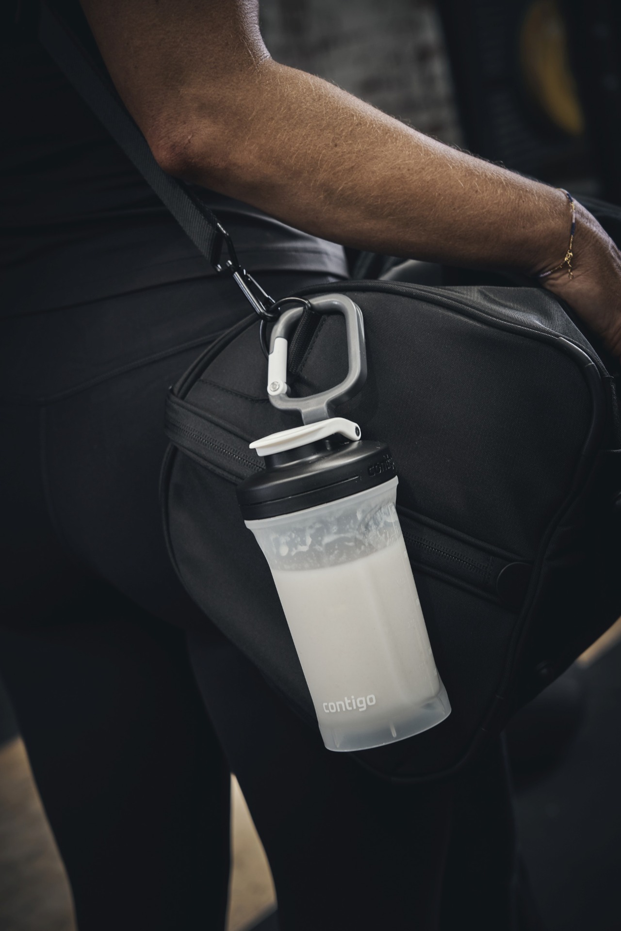 Nová generace fitness shakerů na proteinové nápoje s mixážní kuličkou a zaobleným dnem nádoby pro snadné rozmíchání obsahu, opatřených výklopným krytem náústku chránícím je proti znečištění. Shaker je opatřen plně otáčitelnou karabinou k upevnění na zavazadlo. Netekoucí, je-li uzavřen. Vhodný do většiny držáků na nápoje. Lze mýt v myčce nádobí.
